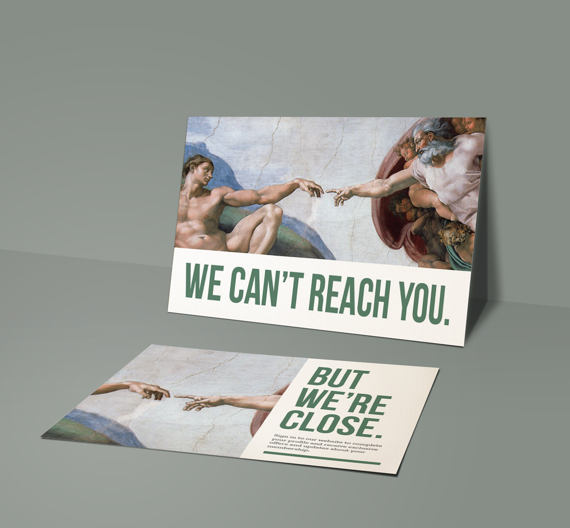 Missing profile information membership postcard concept.